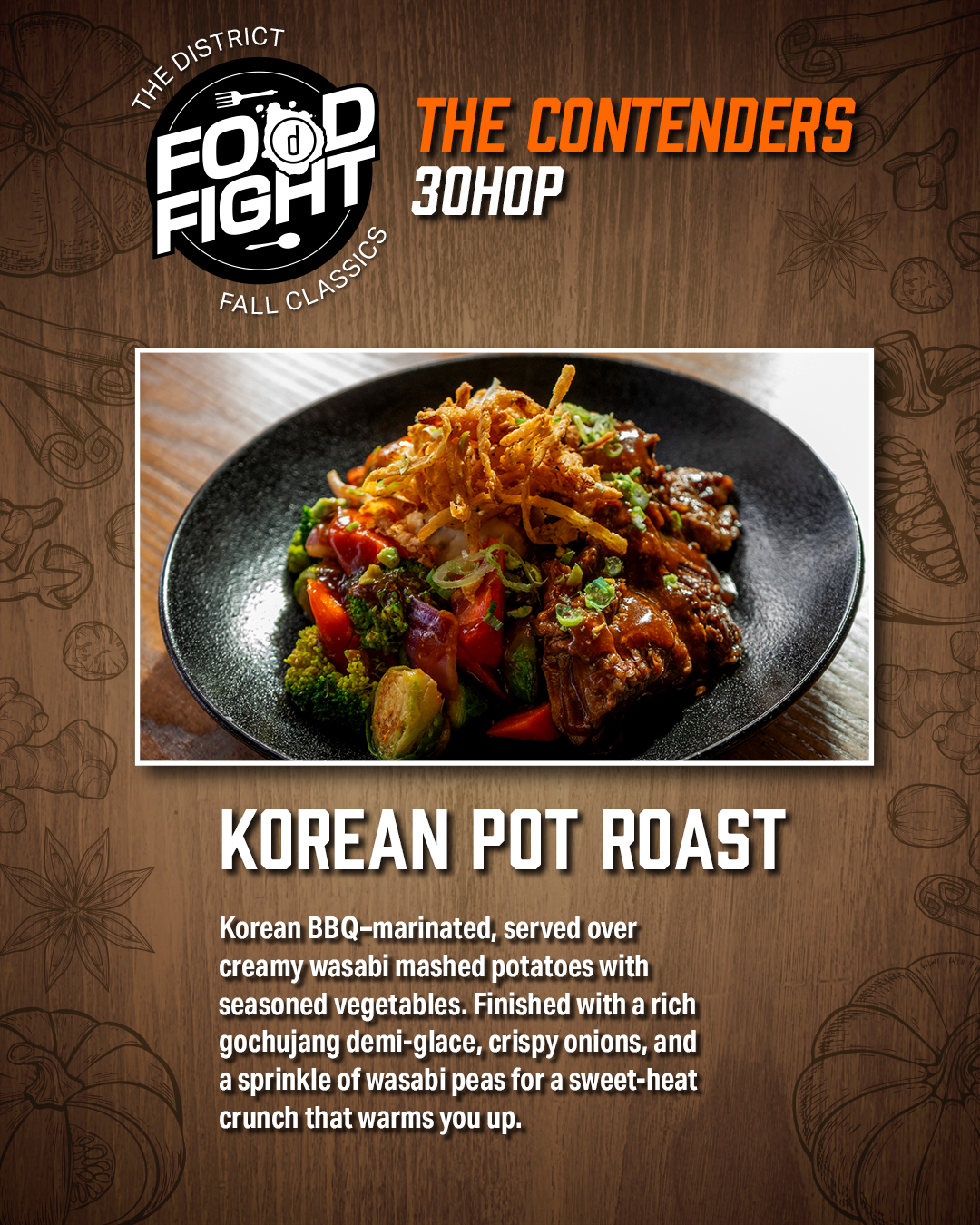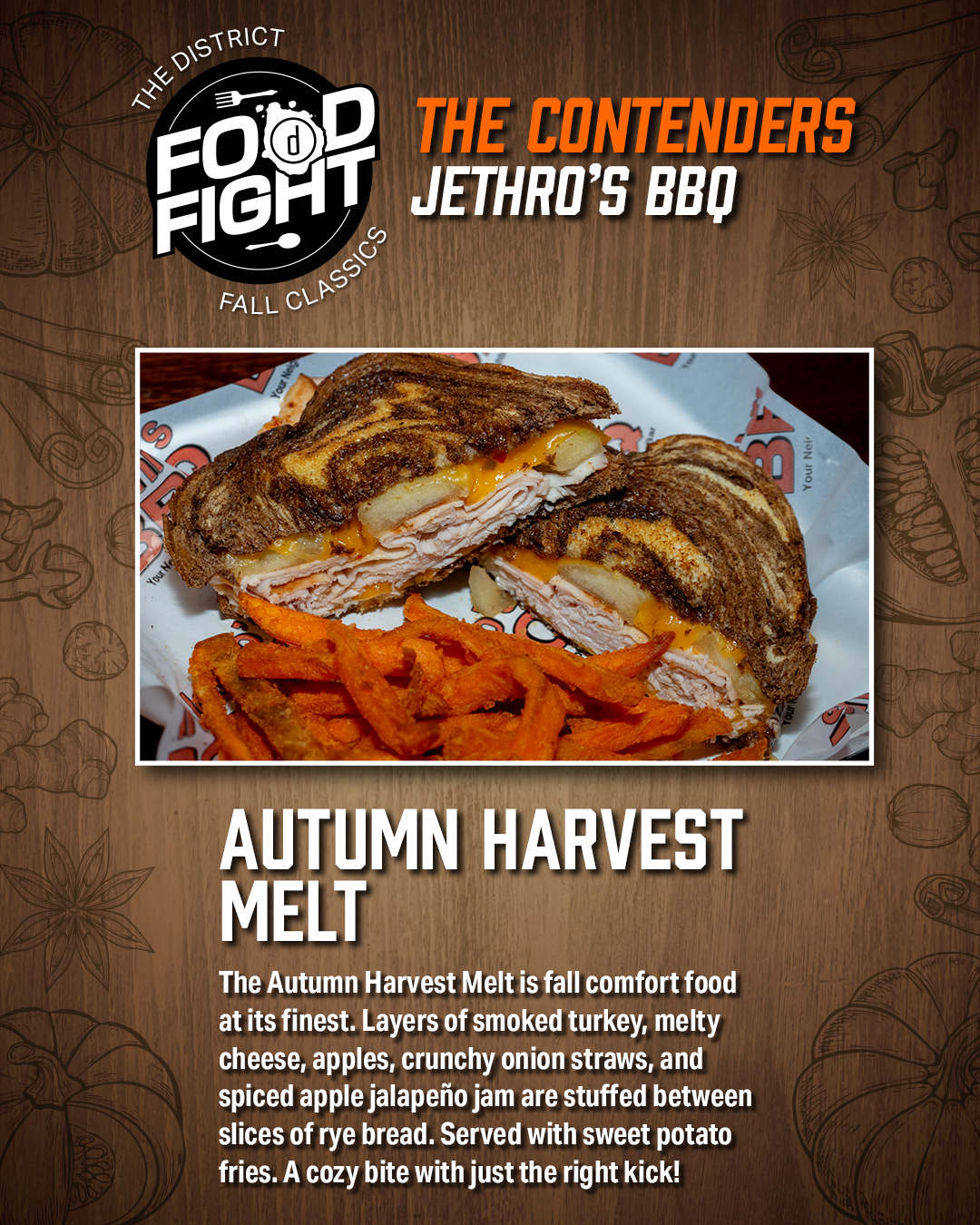 Our restaurants are going head-to-head in a themed cook-off — and you get to be the judge! Try each restaurant’s special dish of the month, then rate them on taste, presentation, and theme to crown the ultimate District Food Fight champion.
